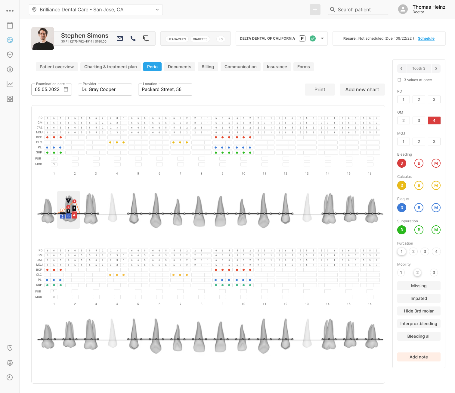 Informative and highly functional for clients' profiles, featuring the ability to create detailed and fully customizable tooth maps tailored to individual needs.