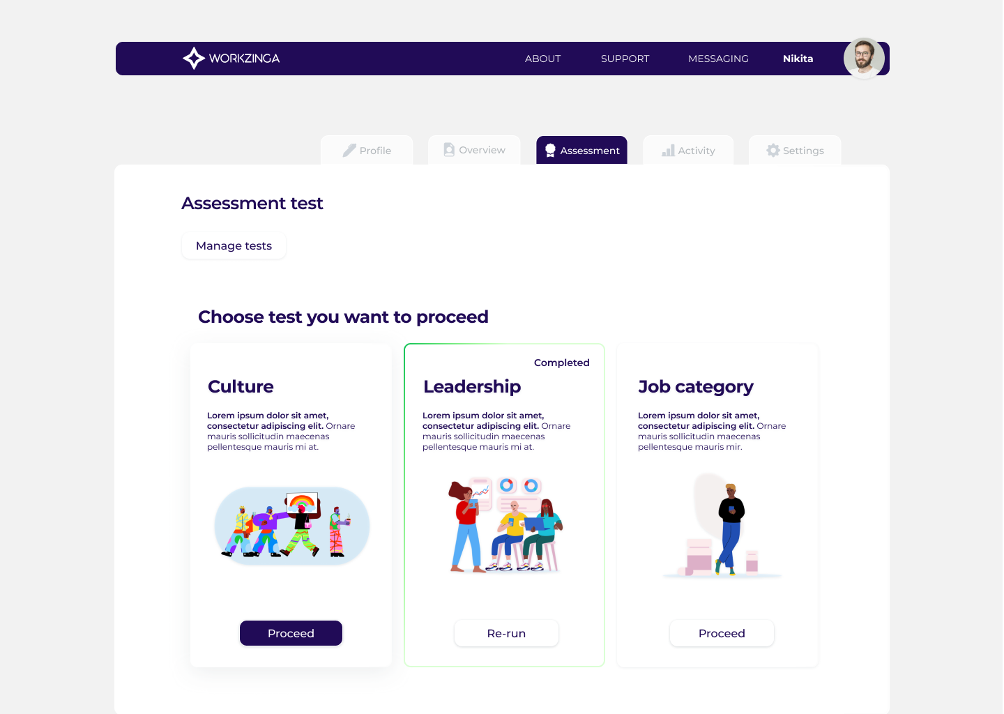 Assessment test for candidates