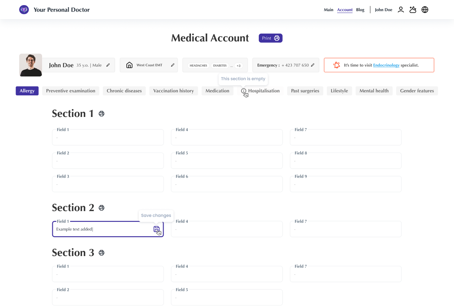 This card securely stores personal data, emergency contacts, and medical info in organized sections for quick access to your history, allergies, and prescriptions.